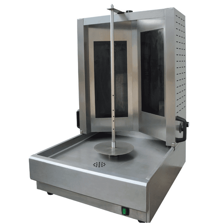 Γύρος ηλεκτρικός κεραμικός KARAMCO. Τεχνικά χαρακτηριστικά: Με ταχύτατες αντιστάσεις infrared. Μήκος σούβλας 75cm (καθαρό για τον γύρο 54cm). Με μοτέρ στο κάτω μέρος της συσκευής για την περιστροφή της σούβλας. Μετακινούμενη η ψηστική επιφάνεια του γύρου προς την σούβλα. Όλος ανοξείδωτος. Με συρτάρι για την περισυλλογή του λίπους. Ξεχωριστό θερμοστάτη για την κάθε ψηστική επιφάνεια.
