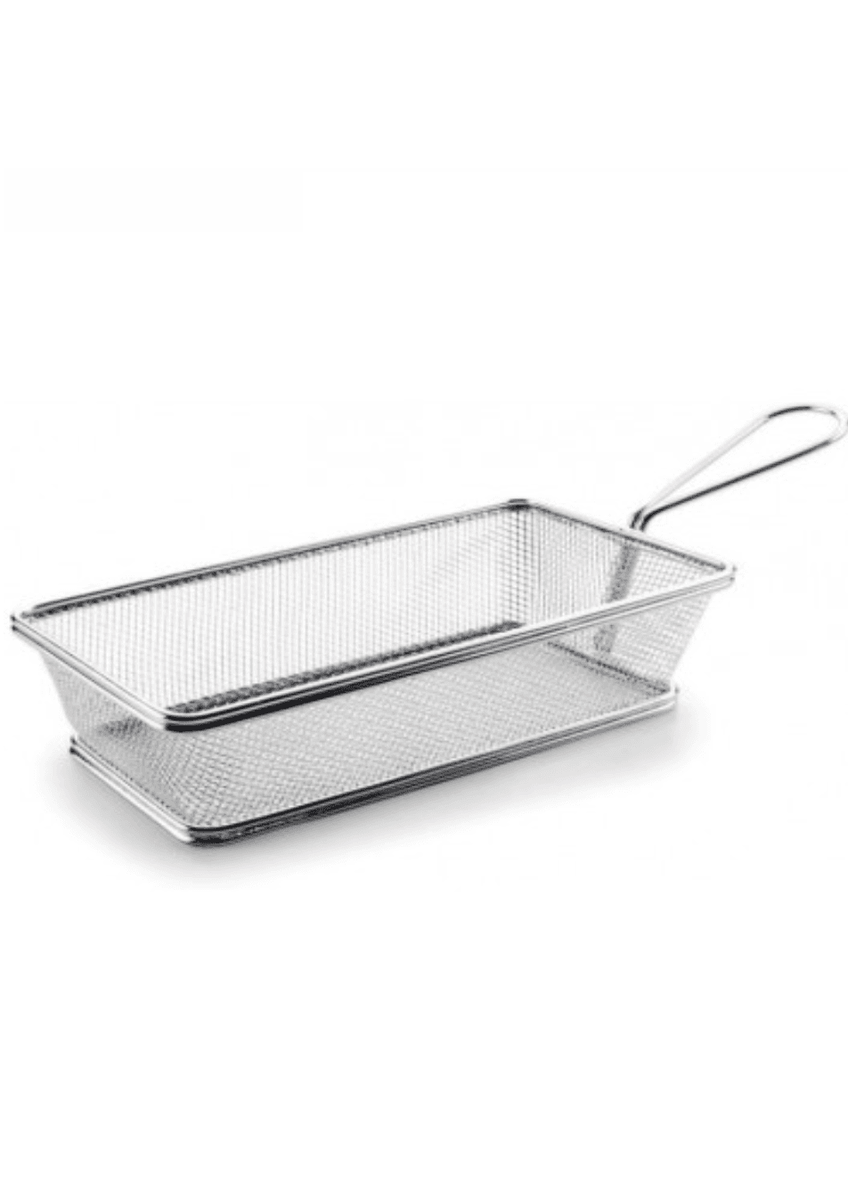 Καλάθι συρμάτινο. Κατασκευασμένο από ανοξείδωτο ατσάλι. Ένας κομψός και πρωτότυπος τρόπος εξυπηρέτησης όλων των ειδών σνακ και τάπας. Μπορεί να παρουσιαστεί σε απορροφητικό χαρτί ή απευθείας στο ράφι.
