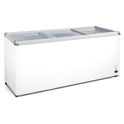 Επαγγελματικός καταψύκτης με συρόμενα κρύσταλλα, SDW650. Ο καταψύκτης έχει χωρητικότητα 464 lt, με διαστάσεις 1695x665x805 mm. Διατίθεται σε χρώμα λευκό και φέρει ρόδες.