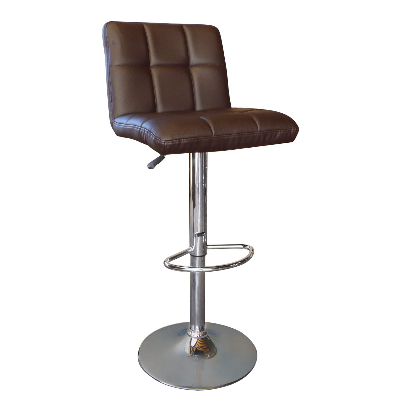 LINO Σκαμπό BAR με Πλάτη, Χρώμιο, PU Σκούρο Καφέ, Ρύθμιση Ύψους, Περιστρεφόμενο