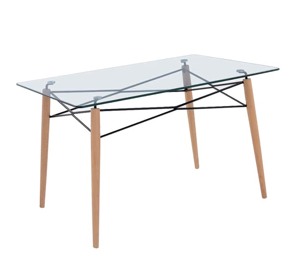 ART Wood Τραπέζι Κουζίνας Τραπεζαρίας, Οξιά Φυσικό, Επιφάνεια Γυαλί