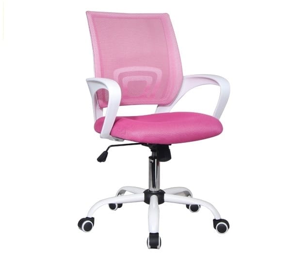 BF2101-S Πολυθρόνα-Pro Γραφείου με Ανάκλιση, Βάση Μέταλλο Βαφή Άσπρο, Ροζ Mesh