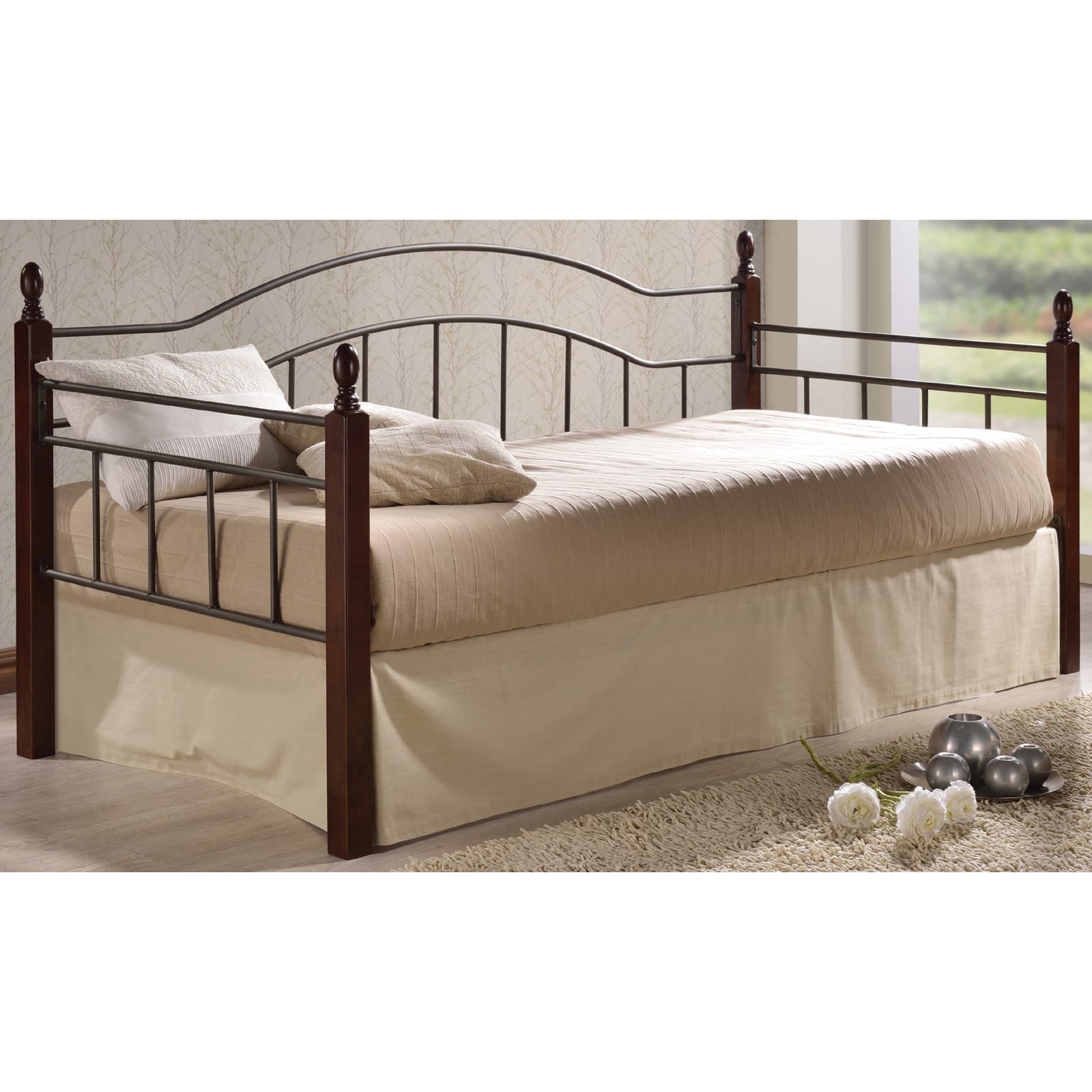 VINCENT Daybed Κρεβάτι Μονό Μέταλλο Βαφή Μαύρο, Ξύλο Καρυδί